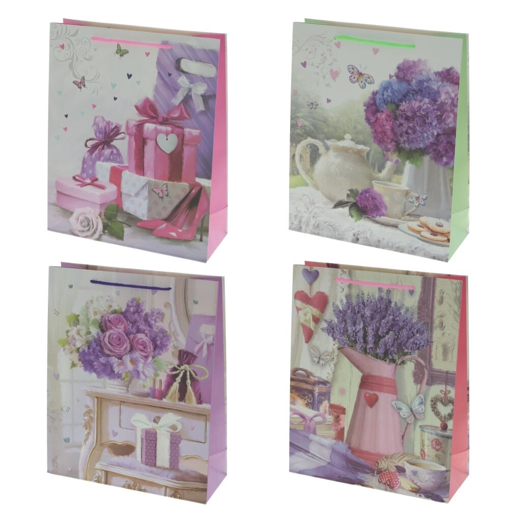 Пакет подарочный (бумага, плотность 210г/м2, блок 12шт), L26 W10 H32 см, 4в.