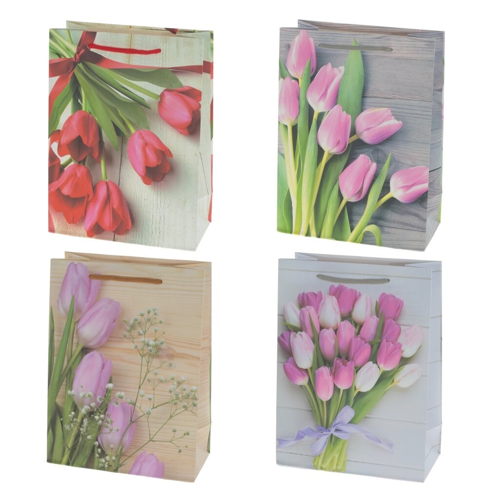 Пакет подарочный (бумага, плотность 210г/м2, блок 12шт), L31 W12 H40 см, 4в.