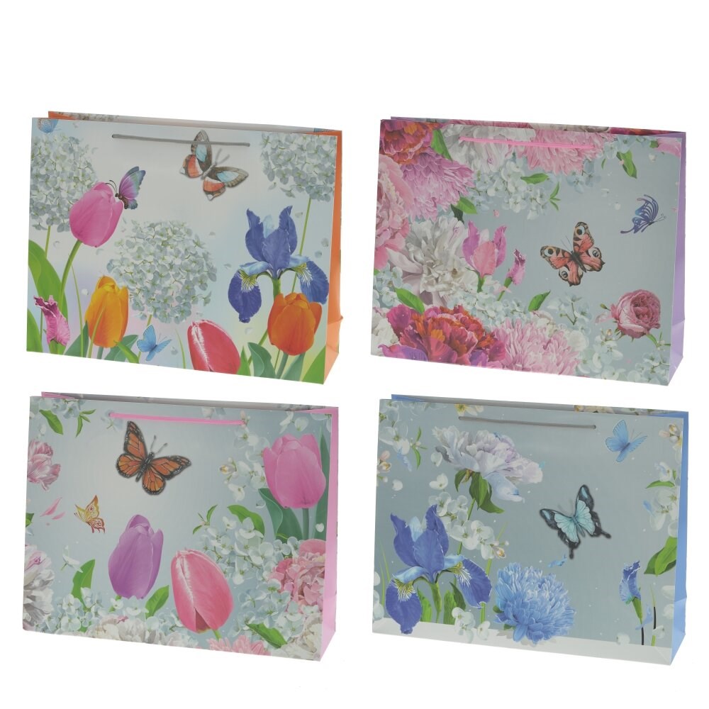 Пакет подарочный (бумага, плотность 210г/м2, блок 12шт), L32 W11 H25 см, 4в.