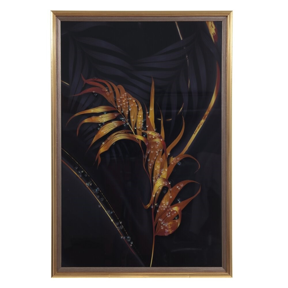 Панно "Золотые листья" в классическом обрамлении. Благодаря четким деталям, правильно подобранному цвету и кристальному декору позволит прочувствовать всю красоту сюжета, органично впишется в стиль современного интерьера и станет его особым штрихом.