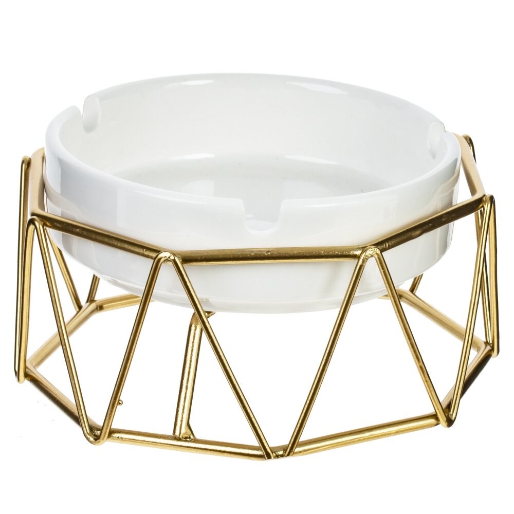 Этот вариант фарфоровой пепельницы с тремя пазами для сигарет подойдет для любых интерьеров. Изделие достаточно просто помыть и высушить. Устойчива. Широкое, металлическое основание не позволит пепельнице опрокинуться.