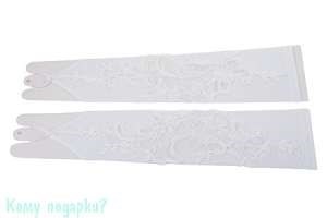 Перчатки свадебные с вышивкой, без пальцев, l=36 см, белый
