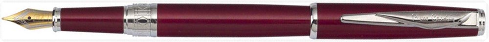 Перьевая ручка Pierre Cardin SECRET Business. Корпус и колпачок - латунь и лак. Отделка и детали дизайна - сталь, хром. Цвет - перламутровый красный. Перо - нержавеющая сталь с позолотой. Упаковка В.