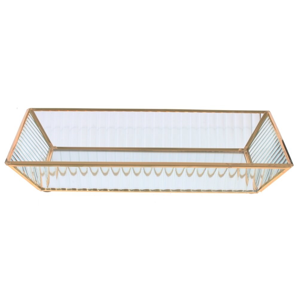 Декоративный стеклянный поднос прямоугольной формы добавит в ваш интерьер нотки благородства и изящества. Поднос можно использовать в качестве подставки для свечей или основы для дизайнерских композиций.