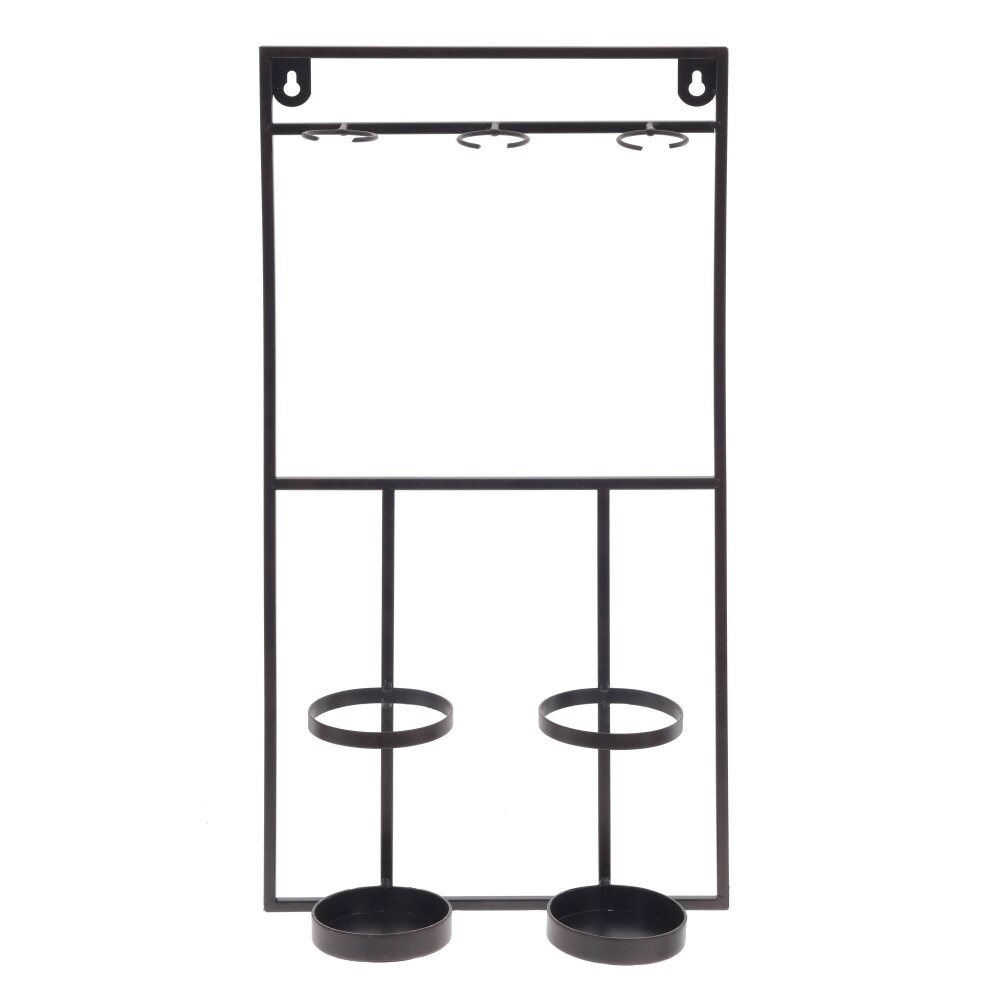 Металлическая подставка для бутылок поможет значительно сэкономить полезное пространство и организовать систему хранения для бутылок, сервировать фуршетный стол и создать праздничную атмосферу. Подставка расчитана на 2 стандартные винные бутылки, и оснащена держателями для 3-х бокалов. Также на ней имеются отверстия для крепления на стену. Такая подставка для бутылок прекрасно подойдет для подарка.