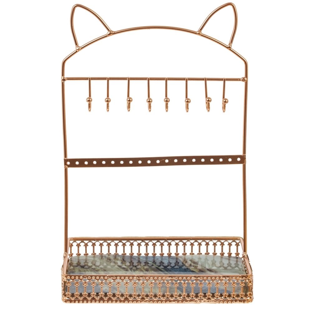 Металлическая подставка золотого цвета - это интересное и оригинальное решение для хранения любимых украшений в одном месте. Изделие можно поставить на комод, прикроватную тумбочку или стол.