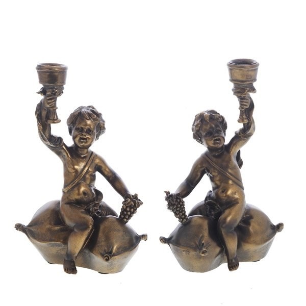 Набор из двух подсвечников в форме ангелов. Предназначены для свечей диаметром 2,5 см. Изготовлены из полистоуна.