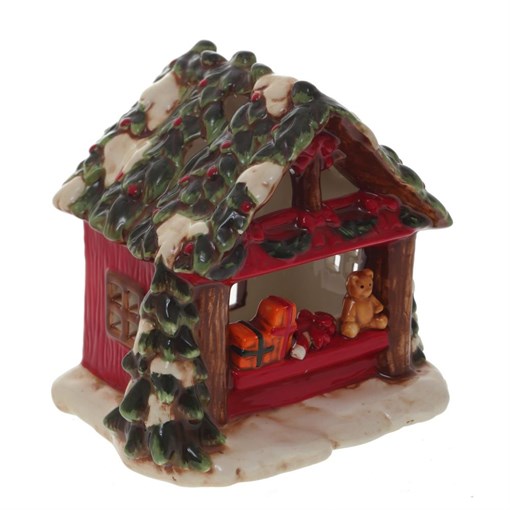 Красочный подсвечник изготовлен из керамики в виде домика, упакован в коробку