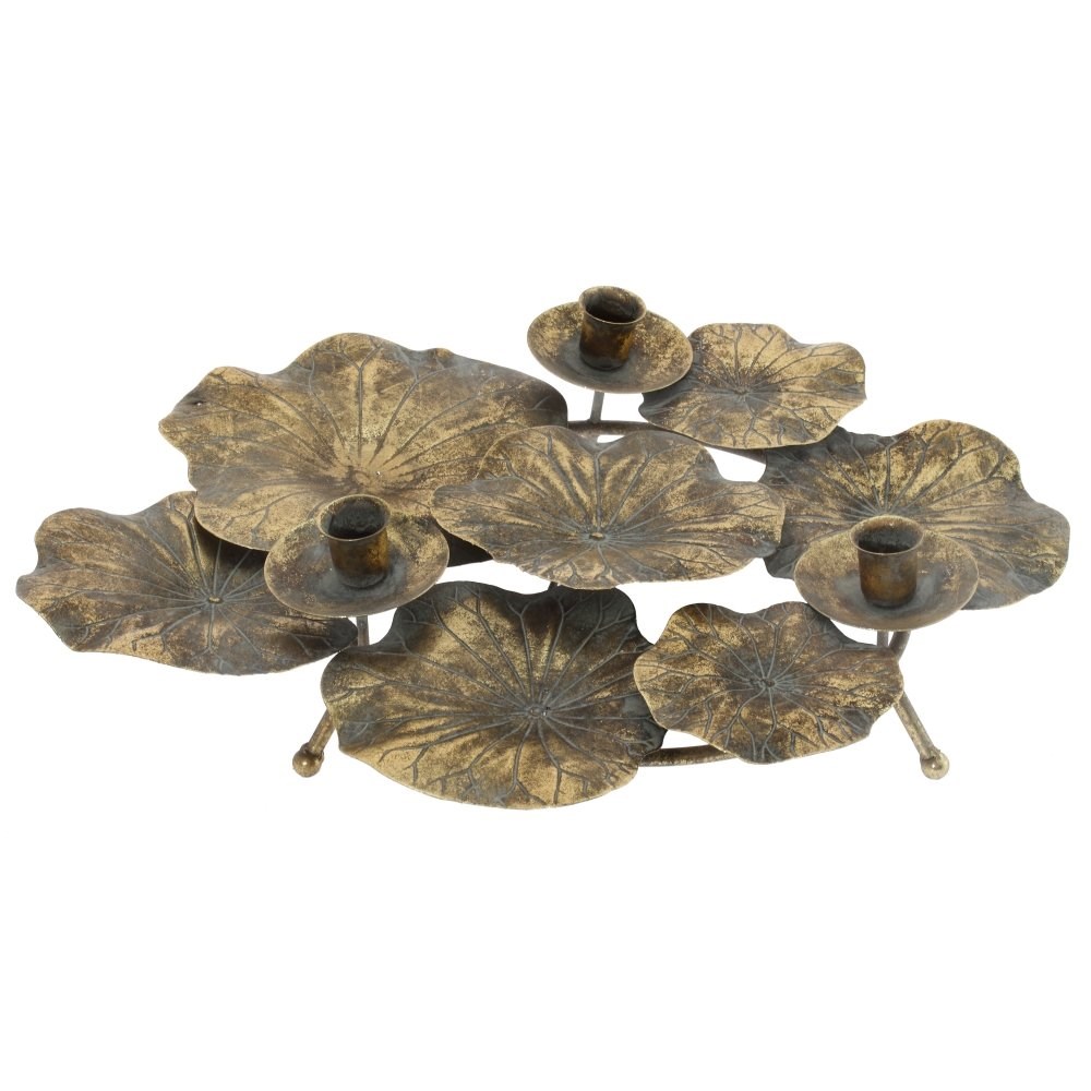 Декоративный настольный подсвечник для трех свечей. Изготовлен из металла. Декор - абстрактные цветы. Размер: L46 W38 H11,5 см, упаковка-пленка.