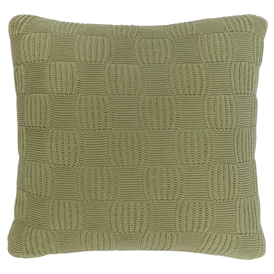 Подушка из хлопка рельефной вязки травянисто-зеленого цвета из коллекции Essential, 45х45 см