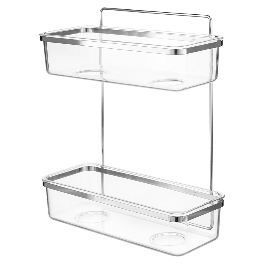 Полка настенная двухъярусная Siv удачно впишется в интерьер любой современной ванной комнаты, создав пространство для удобного размещения душевых принадлежностей: шампуня, мочалки, мыла и др. Модель сочетает в себе минималистичный дизайн и износостойкие материалы. Каркас изготовлен из железной проволоки с антикоррозионным покрытием. Контейнеры для хранения выполнены из практичного полистирола, отличаются хорошей вместительностью. Полка легко монтируется к стене с помощью многоразовых силиконовых наклеек Magic-loc. Не требуется сверление. Крепления идут в комплекте.