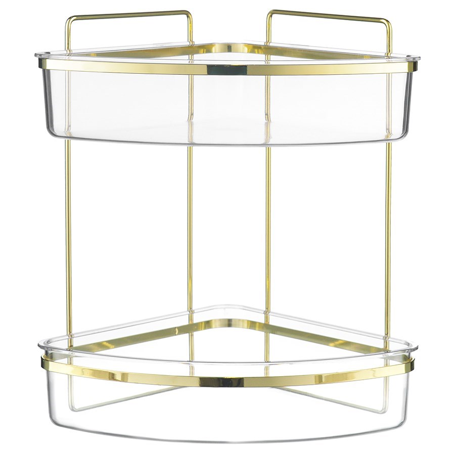 Полка для душа настенная двухъярусная угловая Siv, золотистая