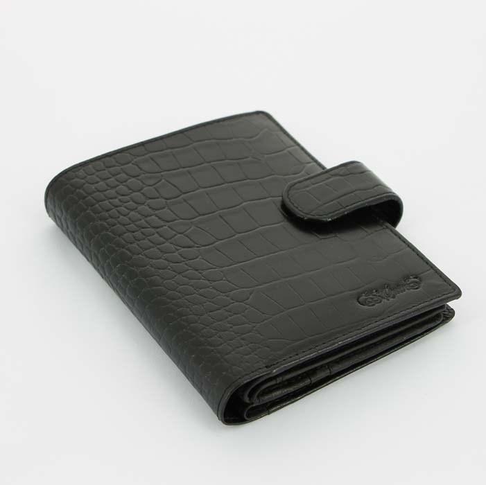 Большое портмоне с отделением для паспорта S.Quire 6100-BK CROCO изготовлено из натуральной воловьей кожи – экологически чистого и безопасного материала.