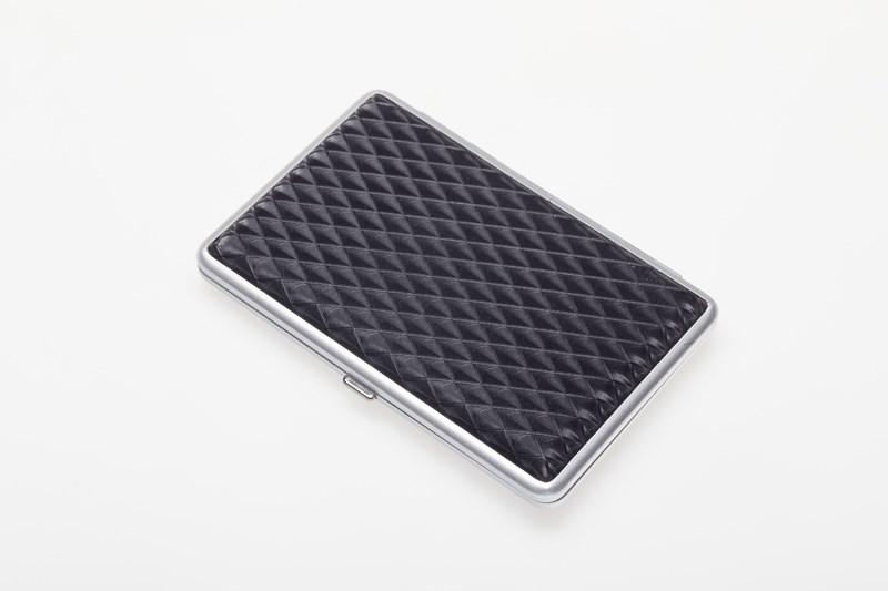 Портсигар S.Quire, сталь+искусственная кожа, черный цвет с рисунком, 74*95*18 мм