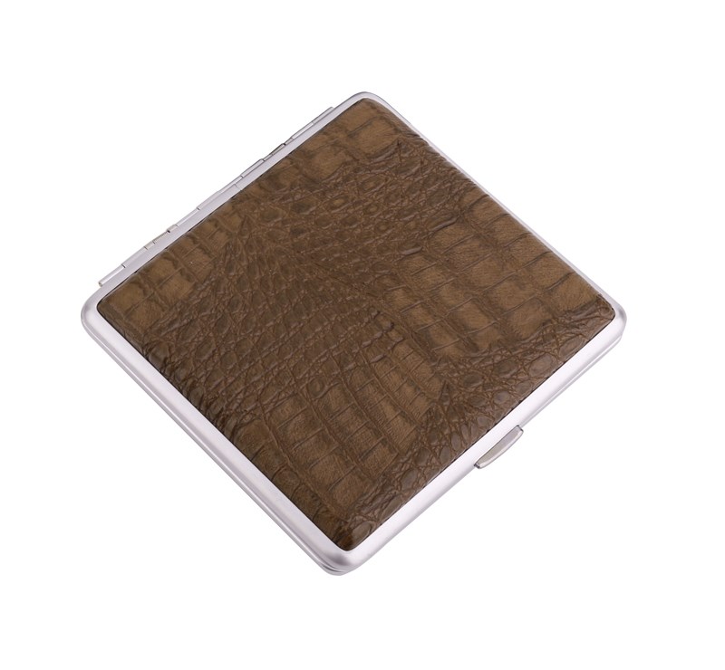 Портсигар S.Quire, сталь+искусственная кожа с металлическими клипами, коричневый цвет, 96*93*19 мм