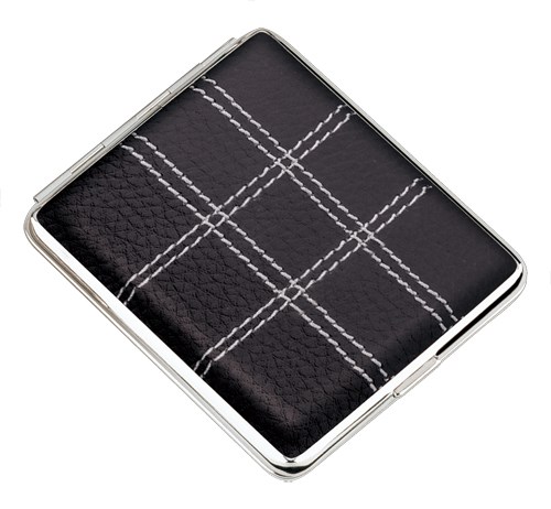 Портсигар S.Quire, сталь+натуральная кожа, черный цвет с прострочкой, 74*95*18 мм