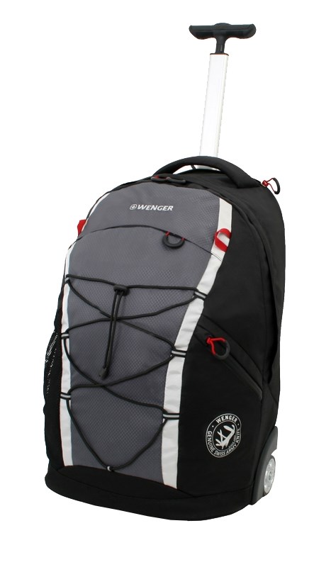 Рюкзак изготавливлен из прочного полиэстера 900D, препятствующего проникновению влаги и ультрафиолетовых лучей. Это очень вместительная модель, оснащённая множеством карманов. Специально для переноски воды рюкзак оснащён карманом из эластичной сетки для бутылки. Спинка и регулируемые плечевые ремни оборудованы системой циркуляции воздуха Airflow. Выполненная из прочного алюминия телескопическая ручка и два колеса позволяют перемещать рюкзак, как чемодан.
