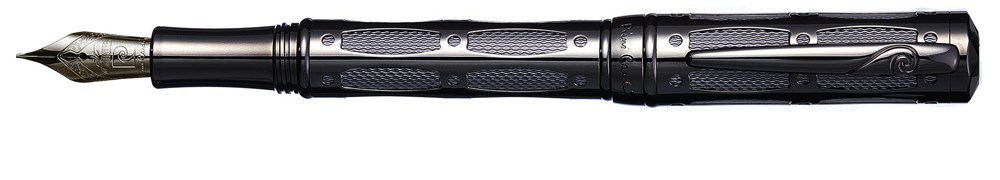 Ручка перьевая Pierre Cardin THE ONE. Корпус и колпачок - латунь и черненая сталь. Отделка и детали дизайна - фигурная оправа корпуса из черненой стали, гравировка гильош. Завинчивающийся колпачок. Перо - BOCK, нержавеющая сталь с позолотой, среднее. Цвет - черненая сталь и т.серый. Упаковка L.