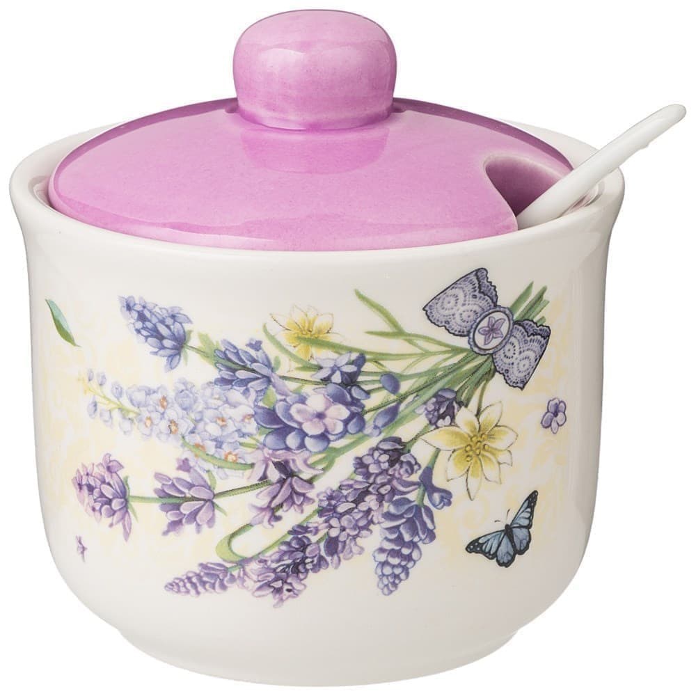 Сахарница с ложкой "Прованс лаванда" 10*10 см H=9,5 см / 300 мл