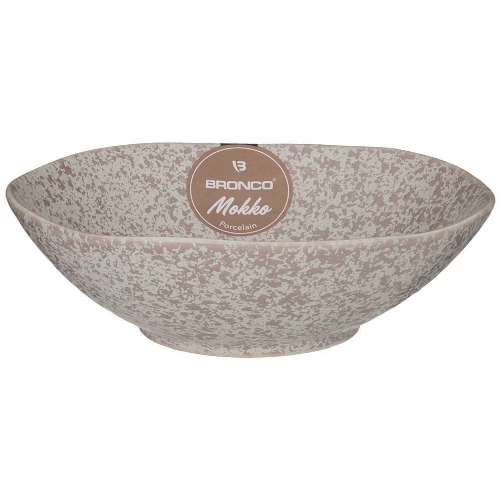 ТМ BRONCO коллекция MOKKO из высокотемпературного фарфора. Специальная реактивная глазурь придает поверхности гранитный узор на всем её протяжении, как если бы он был вырезан из цельного блока скалы. Идея дизайна – создать фарфор натуралистичным и очень близким к природным материалам по своей текстуре, цвету и внешнему виду. Коллекция несомненно понравится самым взыскательным модникам. Посуда хороша для ежедневного использования, легка в уходе. Вся продукция сертифицирована и безопасна для контакта с пищевыми продуктами. Разрешено использовать в духовом шкафу, микроволновой печи, можно мыть в посудомоечной машине. Готовьте с удовольствием!