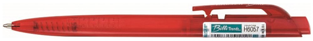Шариковая ручка Hauser Billi Trendz, корпус - полупрозрачный пластик под цвет чернил, элементы дизайна - пластик под цвет чернил, цвет чернил - красный, толщина стержня - 1,0мм, 12шт/уп
