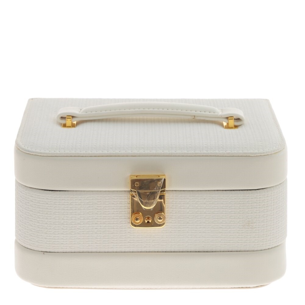 Шкатулка с автоматическим механизмом. На внутренней стороне крышки зеркало. Верхний уровень разделен на три секции, одна из которых с валиками для колец. Средний уровень - на шесть секций. Нижний уровень - выдвижной, для крупных украшений или бумаг. Замок надежный и автоматический, изготовлен из нержавеющей стали, мягкая ручка для удобства транспортировки.