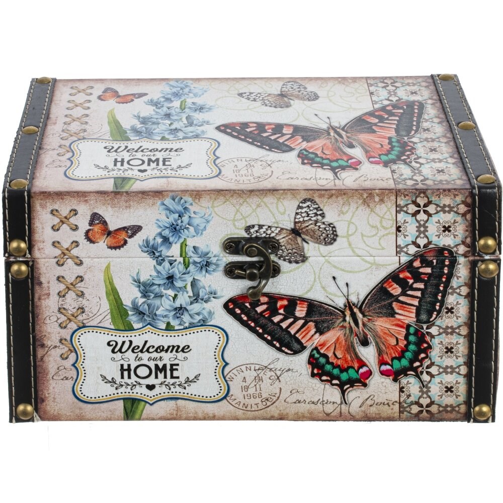 Шкатулка в форме сундука с откидной крышкой, с металлическим замком-защелкой, декорирована яркими тематическими рисунками и надписями. Модель имеет накладки с контрастной отстрочкой и заклепки.