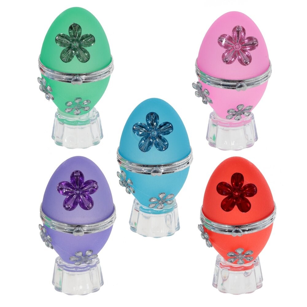 Шкатулка в форме яйца украшена стразами и декором в виде цветка. Предназначена для хранения самых любимых украшений или как коробочка для небольших подарков или сюрпризов на праздник Пасхи. Представлена в пяти вариантах.
