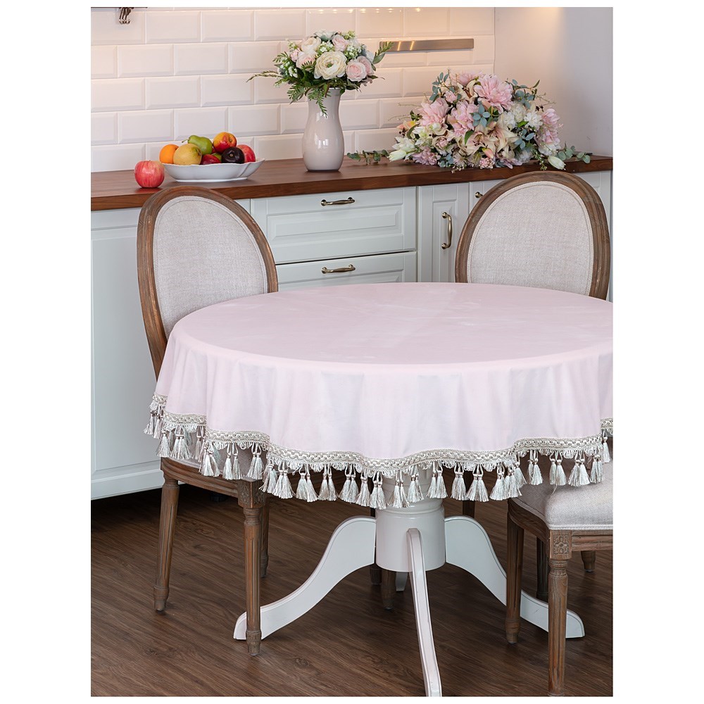 Скатерть круглая "Роскошь" d160 см , 100% п/э, кисти,розовый, велюр