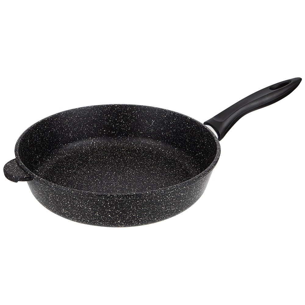 Сковорода глубокая изготовлена из литого толстостенного алюминия и имеет ультрапрочное антипригарное покрытие ТМ PFLUON, главное преимущество которого - устойчивость к царапинам и износу. Также это покрытие абсолютно безопасно для человека, т.к. не содержит PFOA или других вредных веществ. Правила использования: не нагревать посуду без продуктов; во время приготовления использовать деревянные или силиконовые кухонные принадлежности; прежде, чем помещать посуду в воду, дайте ей остыть; не мыть посуду с применением абразивных или щелочных моющих средств, в ПММ мыть в режиме "Эко". В духовом шкафу можно использовать только без ручки и при температуре до 250 градусов. Не используйте съемную ручку, чтобы достать раскаленную сковороду из духового шкафа. Необходимо использование прихваток во время приготовления в духовом шкафу. Подходит для всех видов варочных поверхностией, за исключением индукционных.
