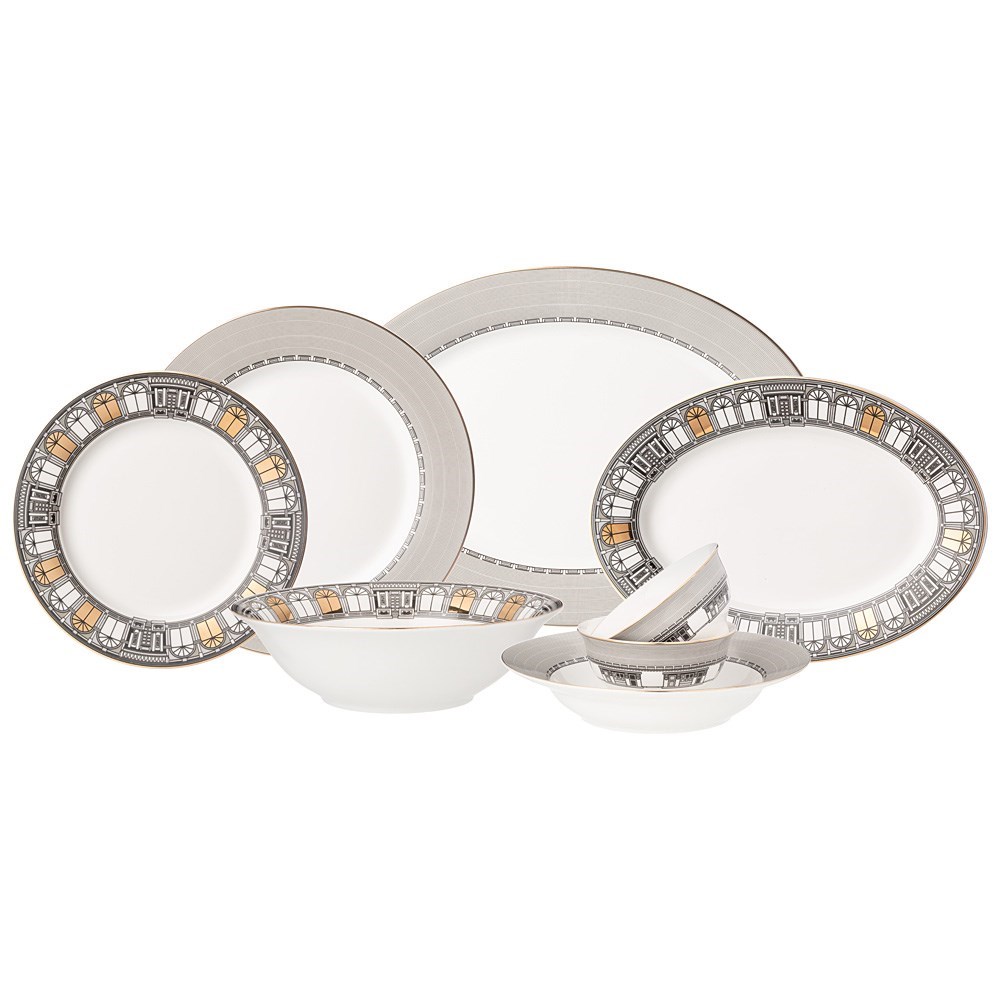 ТМ LEFARD коллекция "Windows" - эксклюзивная посуда для сервировки стола из тонкостенного упрочненного фарфора. Торжественная и неповторимая, уютная и стильная коллекция бережно хранит семейный очаг, в котором всегда горит огонь и вас всегда ждут. Прошла сертификацию. Безопасна для контакта с пищевыми продуктами. Отличный подарок. Не использовать в микроволновой печи, не рекомендуется мыть в посудомоечной машине. Комплекность: тарелка обеденная 25,5 см 6 шт., тарелка закусочная 20,5 см 6шт, тарелка суповая 23 см 6 шт., салатник 23 см. 1750 мл 1 шт., салатник 11,5 см 450 мл 2 шт., блюдо овальное 25,5 см - 1 шт., блюдо овальное 35,5 см - 1 шт.