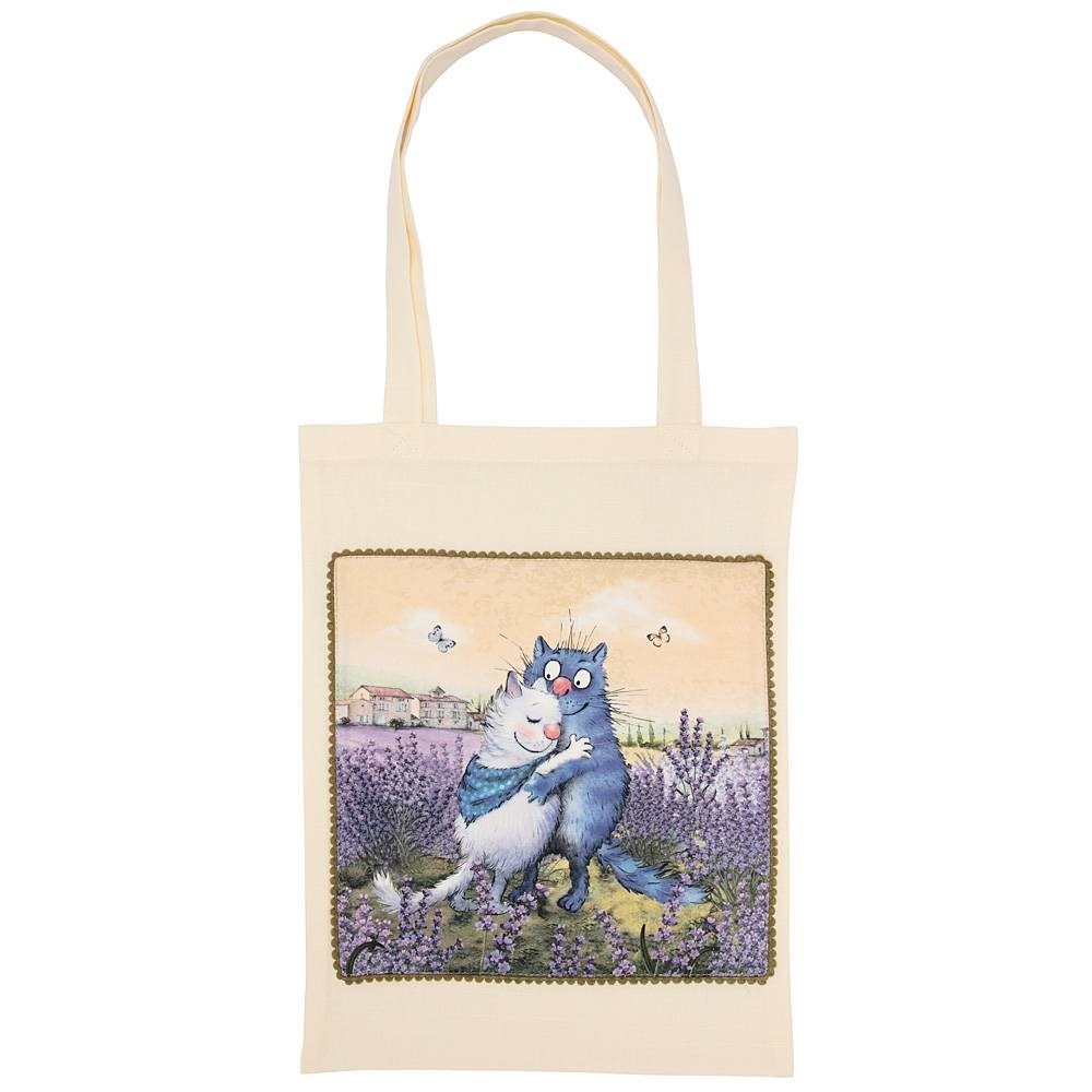 Сумка "Синие коты.лаванда",30х40 см ,крем, 100% хлопок,твил