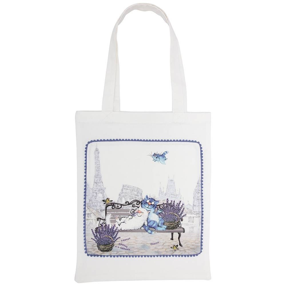 Сумка "Синие коты. париж",30х40 см ,белый, 100% хлопок,твил