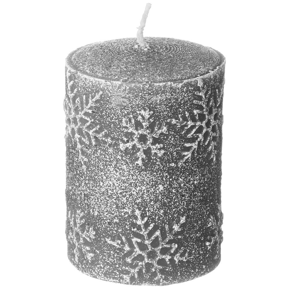 Свеча bronco столбик "Снежинки" серая 6*8 см