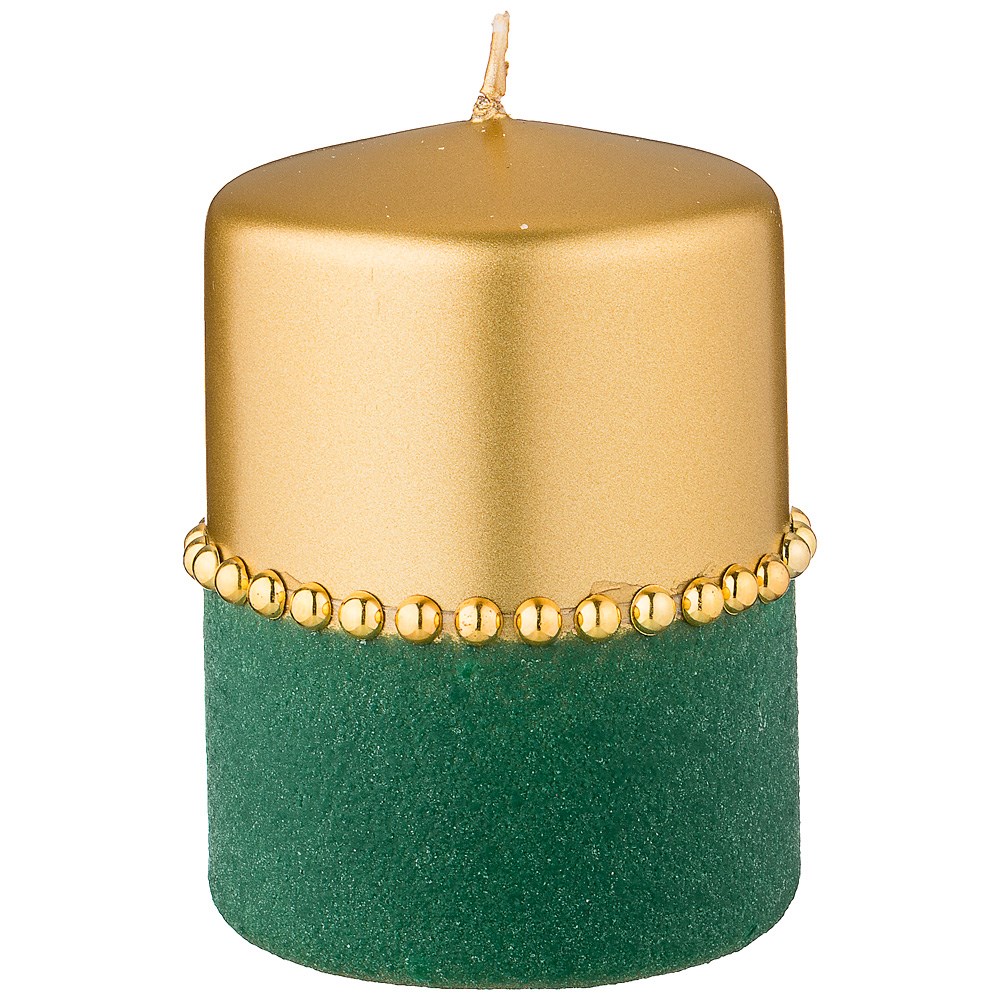 Свеча декоративная столбик "Велюровый шик" green D=7,5 см H=10 см