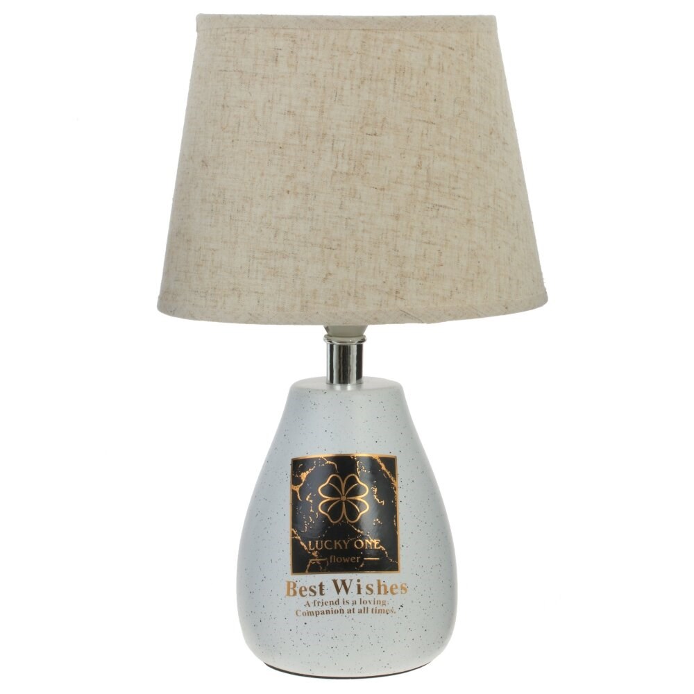 Светильник с оригинальным керамическим основанием и абажуром бежевого цвета будет радовать глаз своим великолепным дизайном. Идеально впишется в интерьер дома, а мягкий рассеянный свет создаст атмосферу уюта и комфорта. Оборудован патроном для цоколя E14 мощностью 60 Вт в количестве 1 шт. Лампа не входит в комплект поставки. Питание: от сети 220 вольт. Включение: шнур 1 м с выключателем.