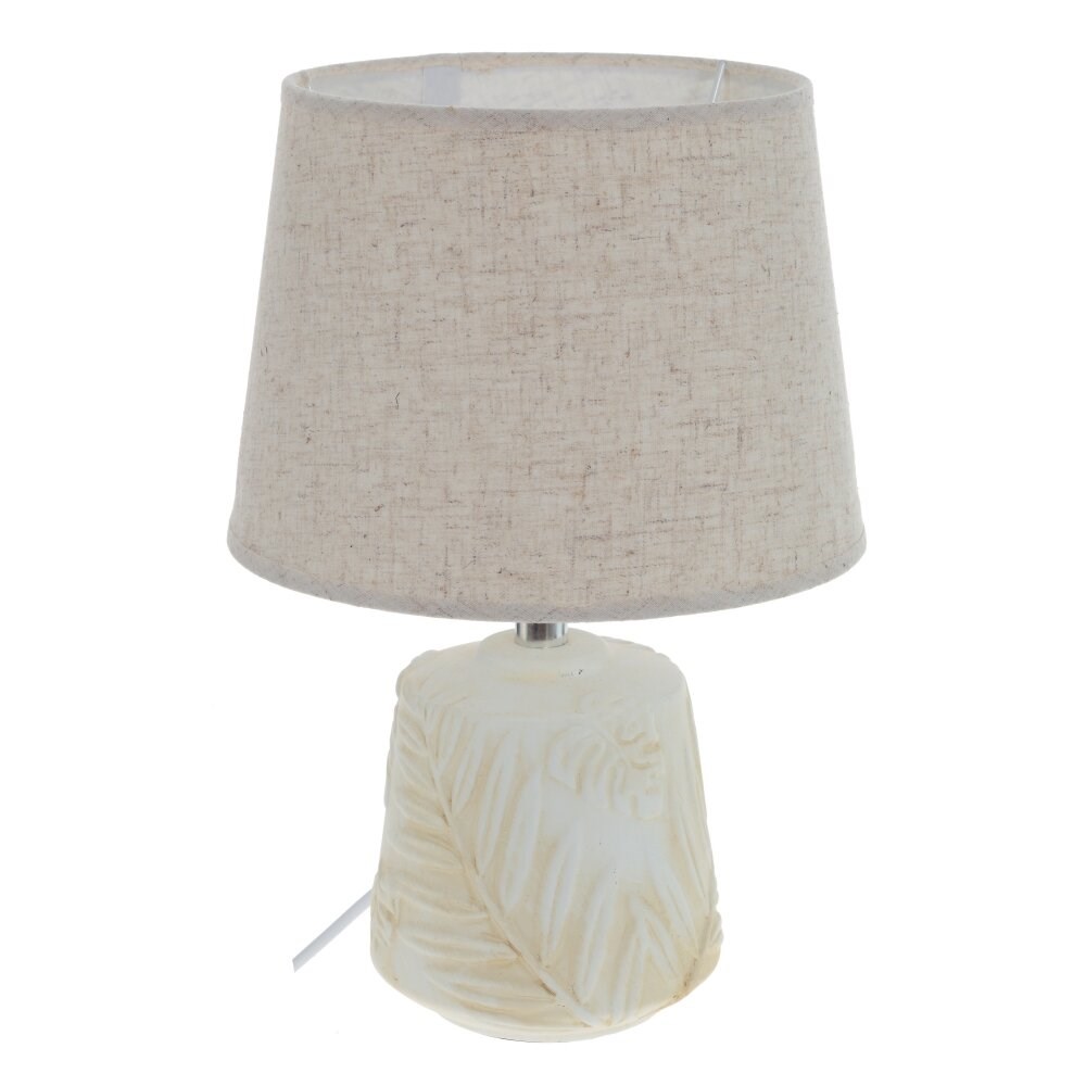 Светильник с керамическим рельефным основанием и абажуром бежевого цвета. Идеально впишется в интерьер дома, а мягкий рассеянный свет создаст атмосферу уюта и комфорта. Оборудован патроном для цоколя E14 мощностью 60 Вт в количестве 1 шт. Лампа не входит в комплект поставки. Питание: от сети 220 вольт. Включение: шнур 1 м с выключателем.