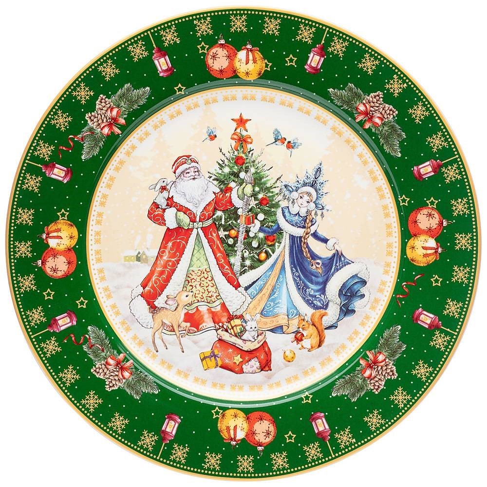 Тарелка обеденная lefard "Дед мороз и снегурочка" 26 см зеленая
