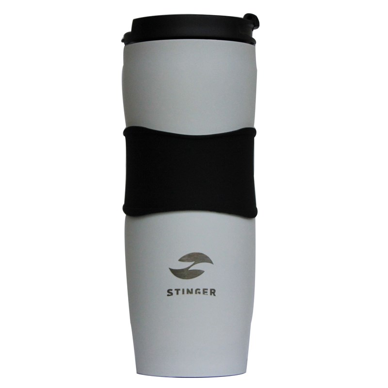 Термокружка Stinger, 0,4 л, сталь/пластик/силикон, белая, 7,2х19,4 см