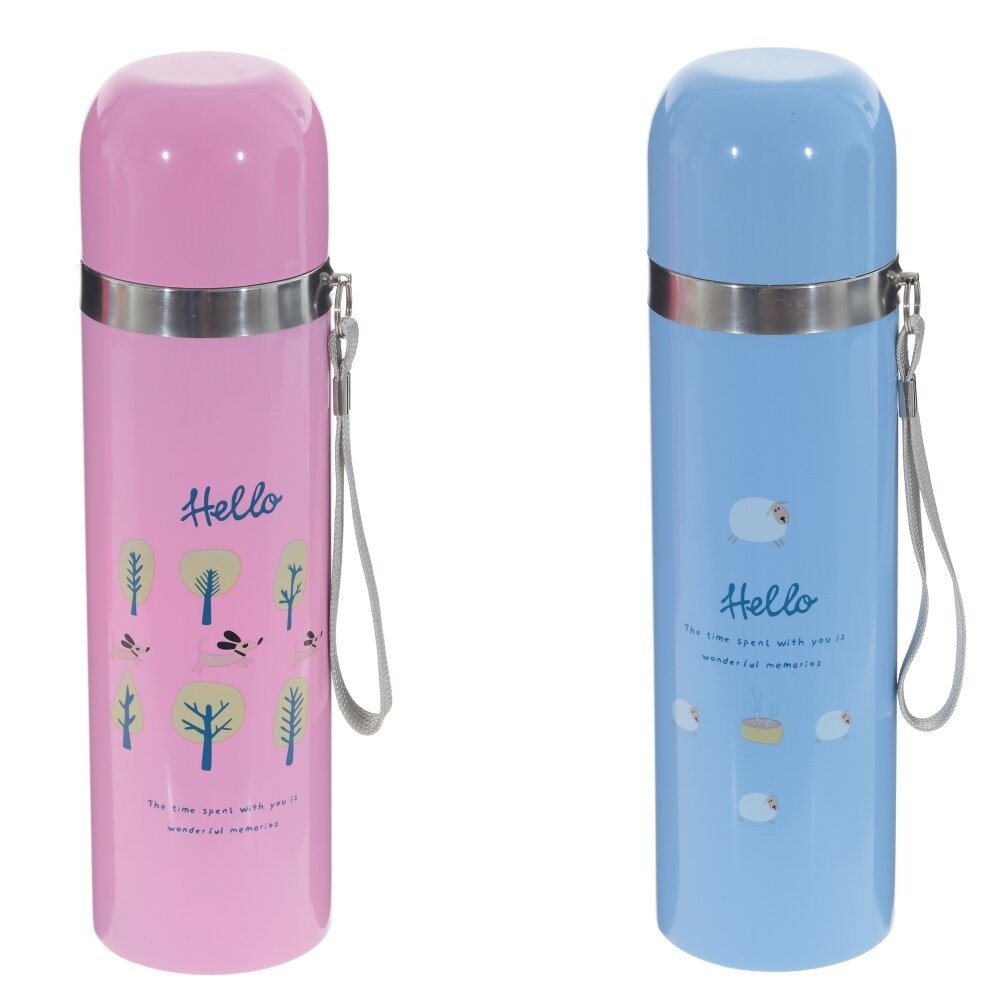 Термос давно уже стал неотъемлемым атрибутом любой поездки или похода, прекрасно подходит для хранения холодных или горячих напитков. Изготовлен из коррозионностойкой стали. Объем 450 мл. Пластиковая чашка-крышка для питья в комплекте. Жидкость из термоса выливается после нажатия специальной блокирующей кнопки. Термос хорошо держит температуру и удобен в использовании. Оснащен длинным ремешком для удобства переноски. Сохраняет температуру до 7 часов. Представлен в двух вариантах.
