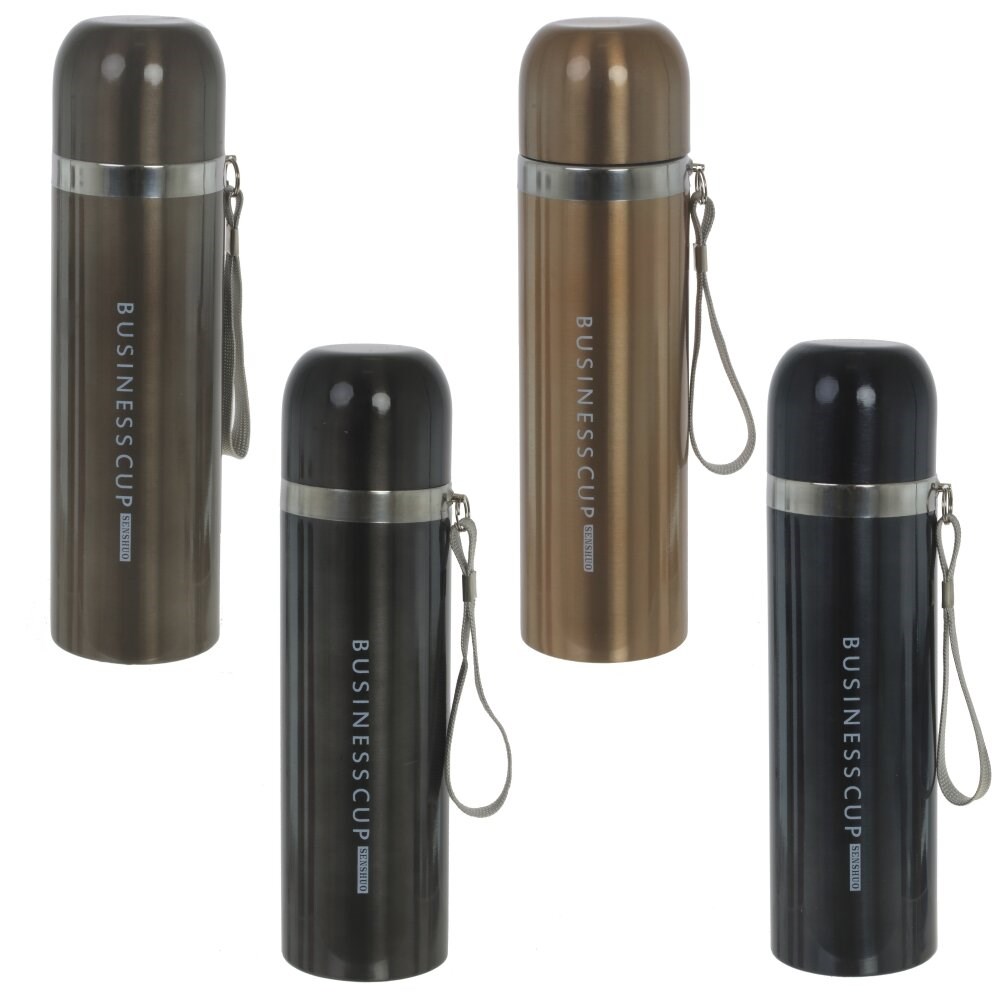 Термос давно уже стал неотъемлемым атрибутом любой поездки или похода, прекрасно подходит для хранения холодных или горячих напитков. Изготовлен из коррозионностойкой стали. Объем 450 мл. Пластиковая чашка-крышка для питья в комплекте. Жидкость из термоса выливается после нажатия специальной блокирующей кнопки. Термос хорошо держит температуру и удобен в использовании. Оснащен длинным ремешком для удобства переноски. Сохраняет температуру до 7 часов. Представлен в четырех вариантах.