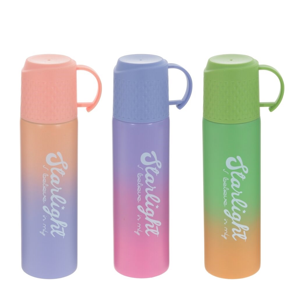 Термос давно уже стал неотъемлемым атрибутом любой поездки или похода, прекрасно подходит для хранения холодных или горячих напитков. Изготовлен из коррозионностойкой стали. Объем 500 мл. Пластиковая чашка-крышка для питья в комплекте. Жидкость из термоса выливается после нажатия специальной блокирующей кнопки. Термос хорошо держит температуру и удобен в использовании. Сохраняет температуру до 7 часов. Представлен в трех вариантах.