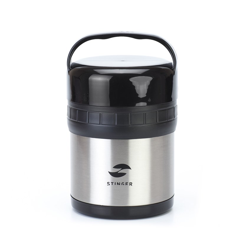 Термос ланч-бокс, Stinger, 1 л, широкий, сталь, серебристый, чёрные вставки, два контейнера