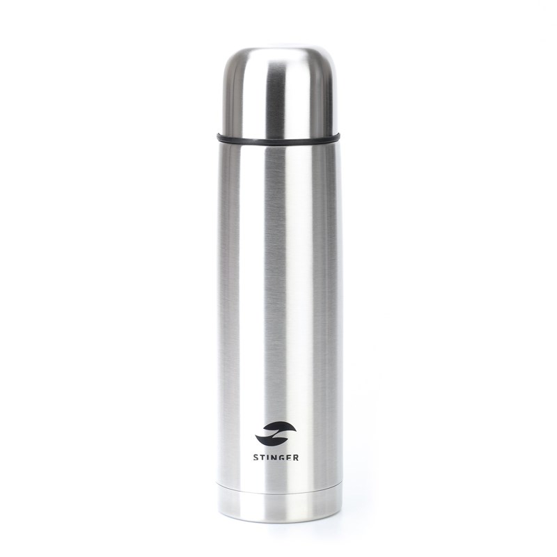 Термос Stinger с чехлом, 1 л, узкий, сталь, искусств. кожа, серебристый, чехол - чёрный