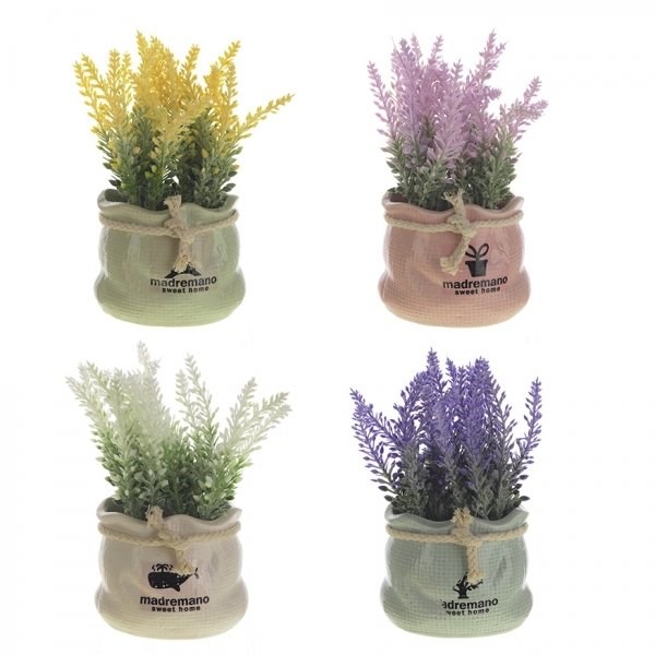 Цветочная композиция, изготовлена из полимерных материалов, керамики. Размер: L10 W8 H18 см, упаковка-коробка. Представлено в четырех вариантах.