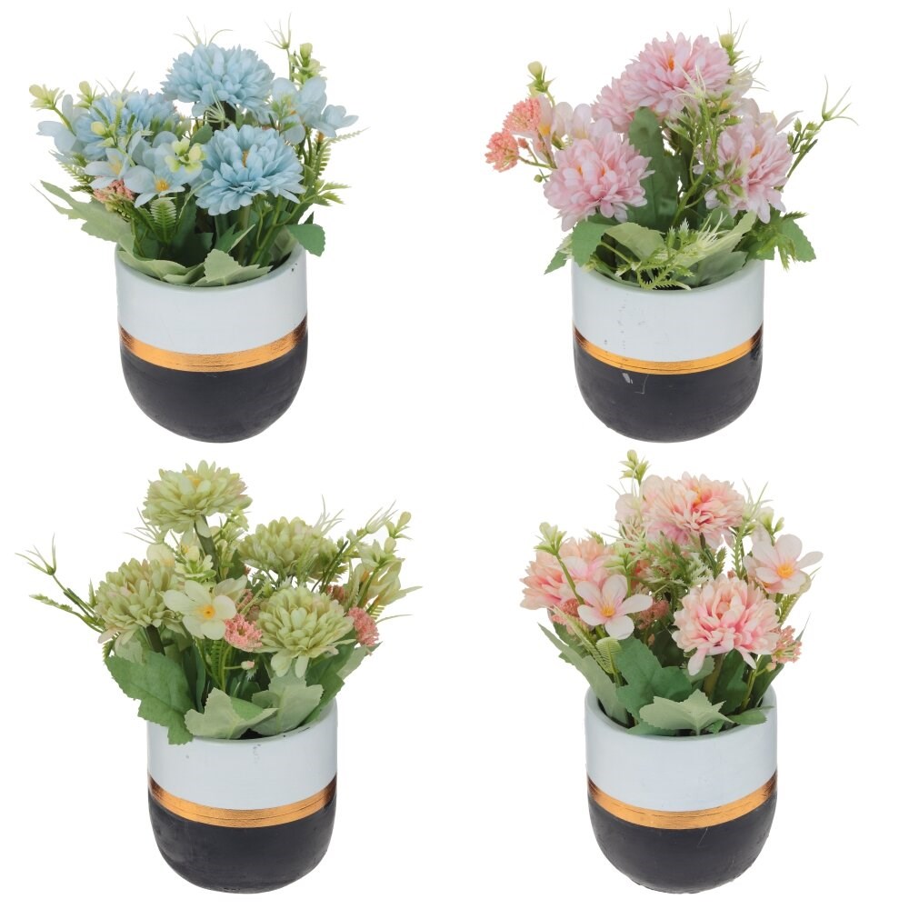Искусственные цветы в кашпо - яркое решение для тех, кто хочет оживить интерьер и подчеркнуть его неповторимый стиль. Изделие выполнено в нежных тонах, которые хорошо вписываются в самые разные цветовые схемы оформления интерьера. Представлена в 4 вариантах