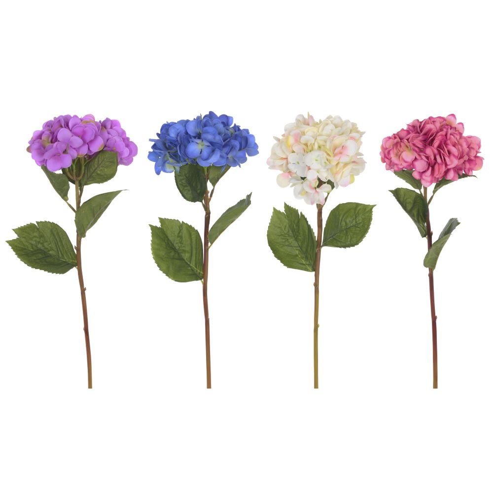 Цветок искусственный "Гортензия", изготовлен из полимерных материалов. Все лепестки и листья имеют правильную форму, соцветия плотно сидят на стебле. Цветок выглядит натурально и будет естесственно смотреться в интерьере. Представлен в четырех вариантах.