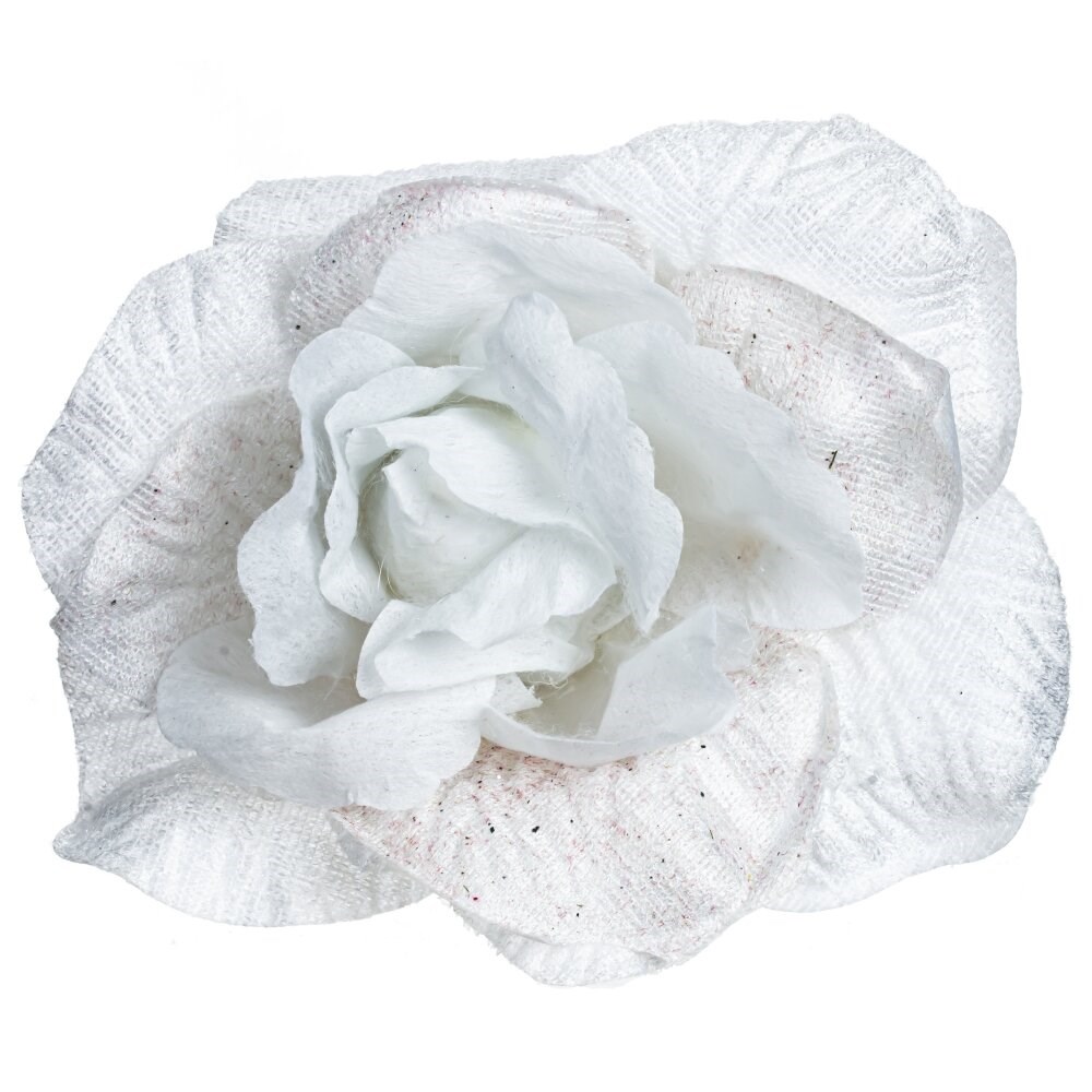 Объемный цветок розы с декором из блесток. Прекрасное украшение для новогодней елки и флористических композиций.