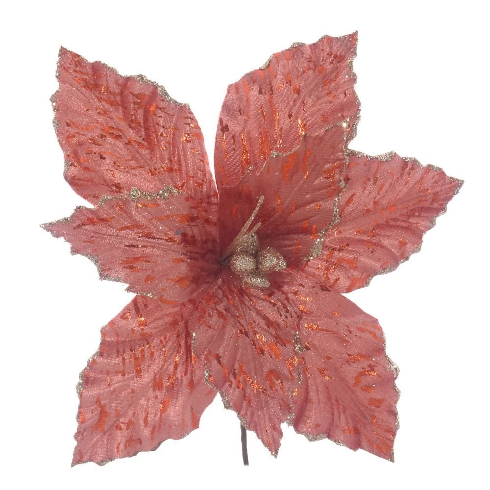 С ролью украшения новогодней ели прекрасно справится этот искусственный цветок. Пуансеттия пепельно-розового цвета. Благородность цветка подчеркивают блестки по краям и в середине.