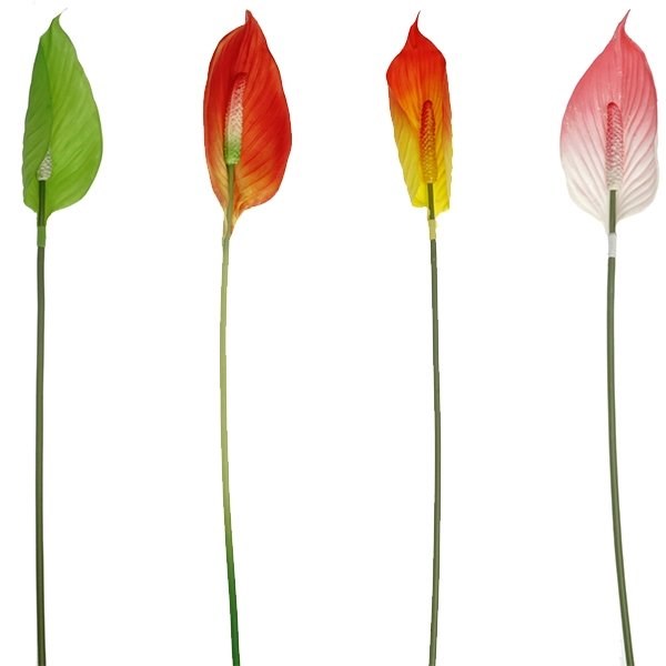 Цветок искусственный "Спатифиллум", изготовлен из полимерных и текстильных материалов. Все лепестки и листья имеют правильную форму, соцветия плотно сидят на стебле. Цветок выглядит натурально и будет естесственно смотреться в интерьере. Представлен в четырех вариантах.